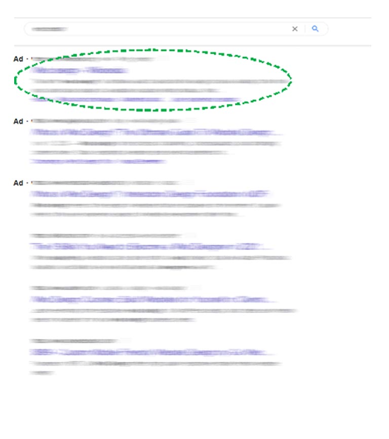 Ad position at the top of a search engine